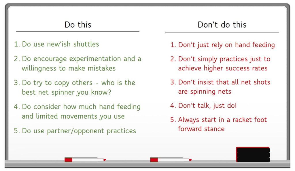 Everyone will have an opinion on how to play and coach net spins, maybe more than any other specific stroke.