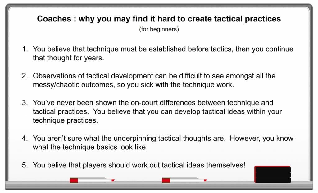 Tactics are not just reproducing the technical strokes/movements you’ve practised, even if you thought doing them in game-like patterns (sequences) would be enough.