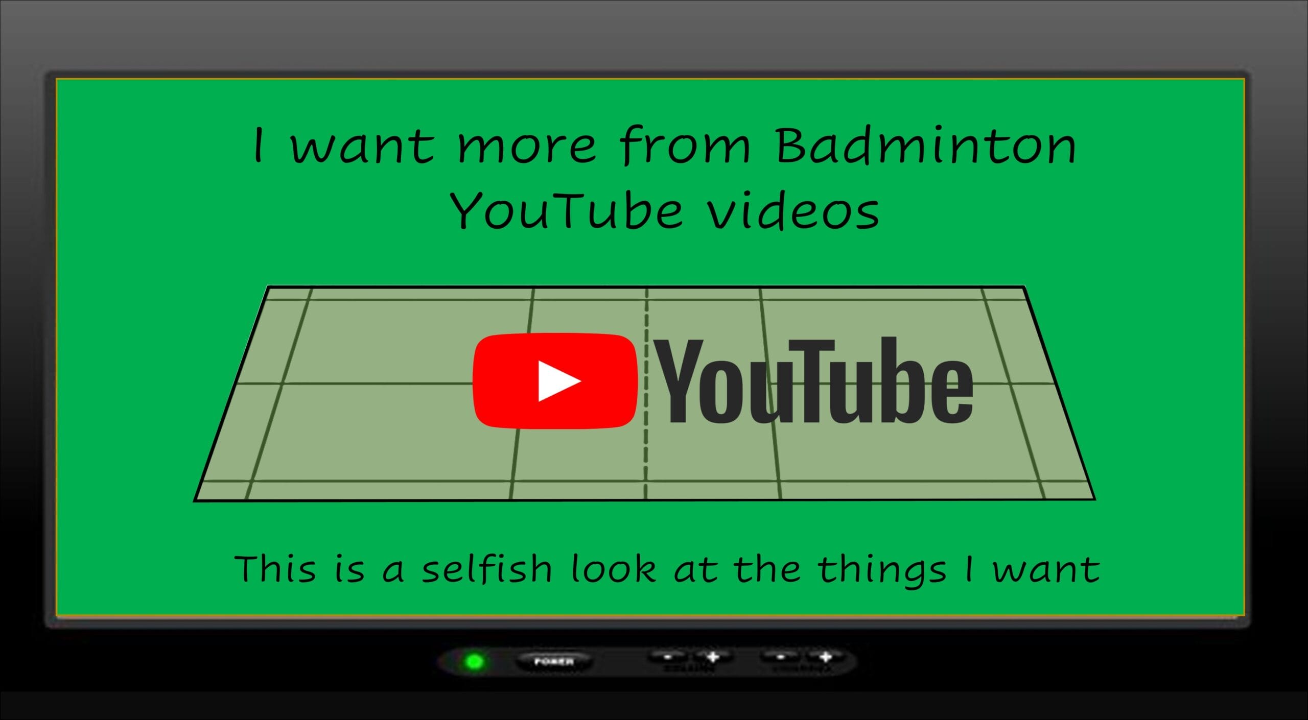 The comments are based selfishly on my wants, maybe they are not the same as yours. If they are different, please let me know what you think about the content of most Badminton YouTube videos.
