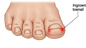 Commonly this is because the nail has been cut incorrectly or has broken off leaving a spike that pierces the flesh on one side of the toe. The area will become red, swollen and very painful.