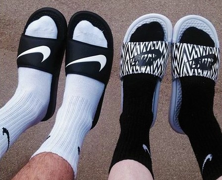 DO NOT walk around in bare feet or just socks! Use a pair of ‘flip flops’ or open toe sandals to let your feet breath.