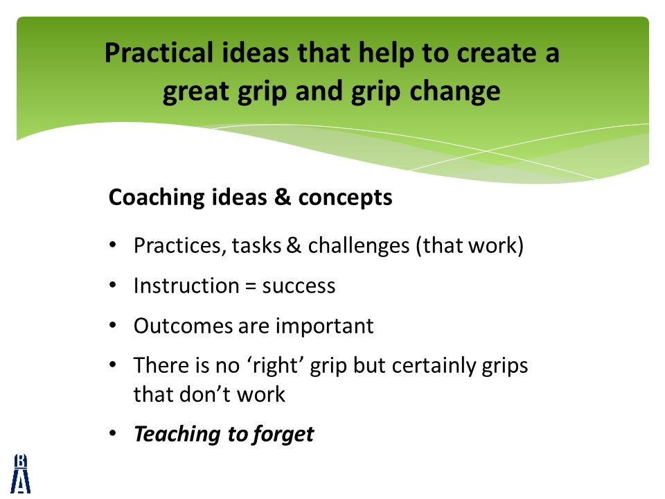 The introduction of gips \& prevention of inappropriate ones should be the goal of every coach when working with novice players